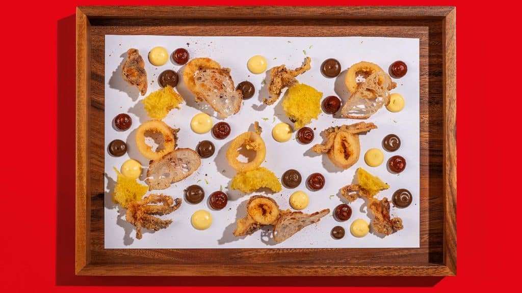 This dish is one that perfectly captures the essence of StreetXO Dubai’s concept. Inspired by the popular deep fried calamari street food from Madrid, these fritters are served with a fantastic accompaniment of textures and flavours including bread sponge cake, crispy bread, tamarind ketchup, black garlic and aioli.