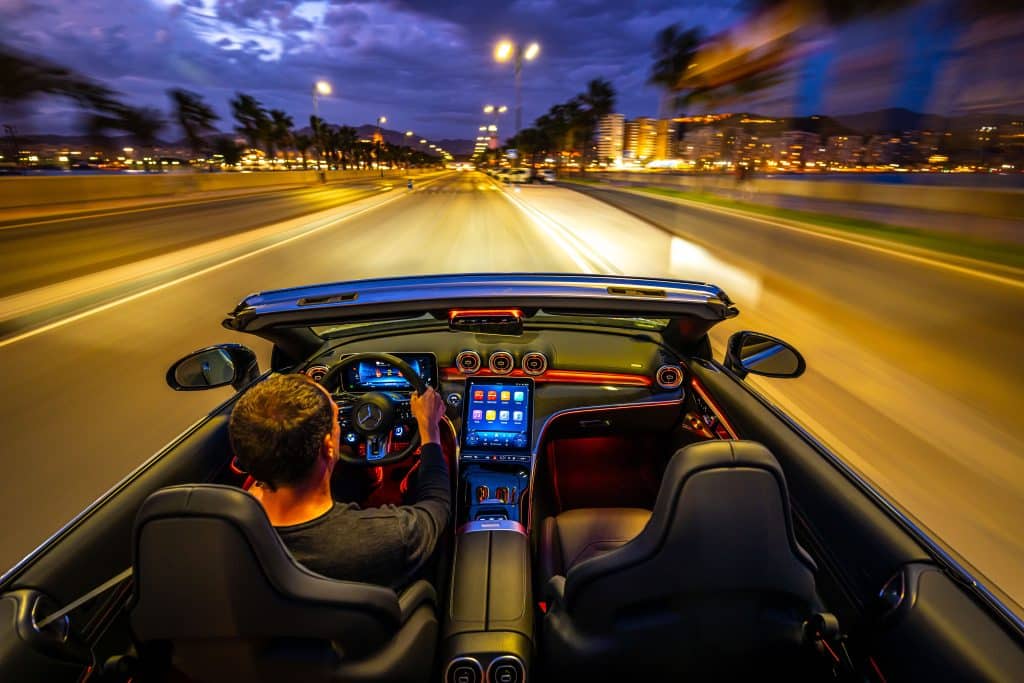 AMG’s signature A-shaped radiator grill alongside the sleek, full LED headlights honours the distinct features of the historic brand, signaling to everyone what type of car is approaching. As I drove this top-down beauty back into town from the racetrack, while scaling the steep mountainside, I encountered, what can only be described as horror-movie-like fog. When I mentioned this to the Mercedes team, they laughed and said, “We planned that, just so you can see how effective our fog lights are.” Mission accomplished.