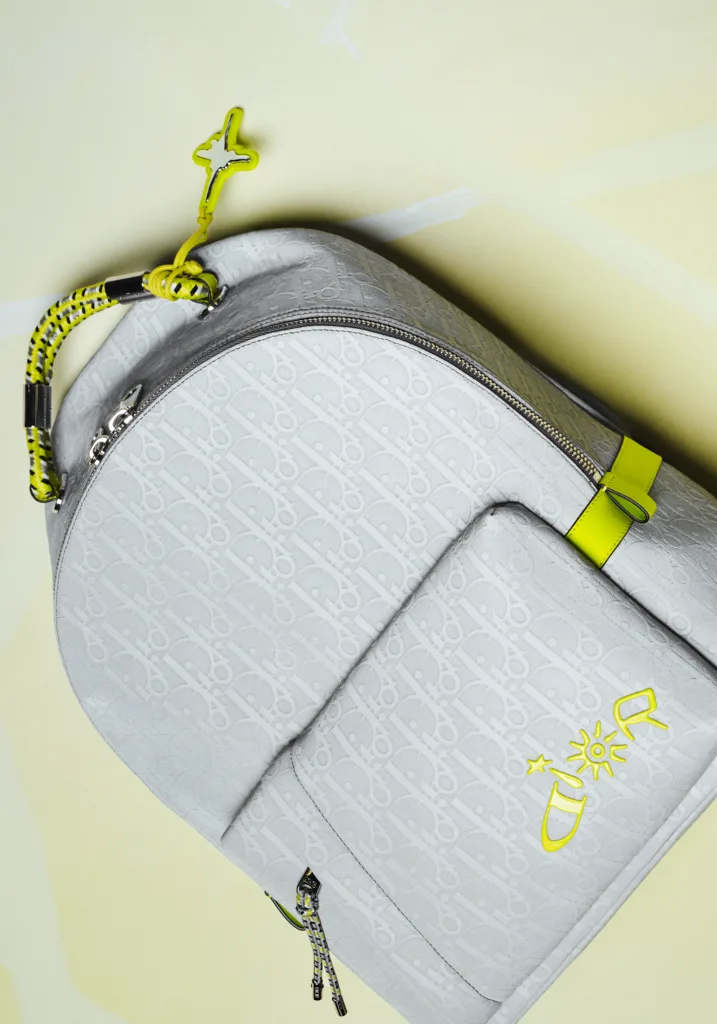 Hamilton’s collection with Dior has everything from jackets and necklaces to slippers and backpacks.