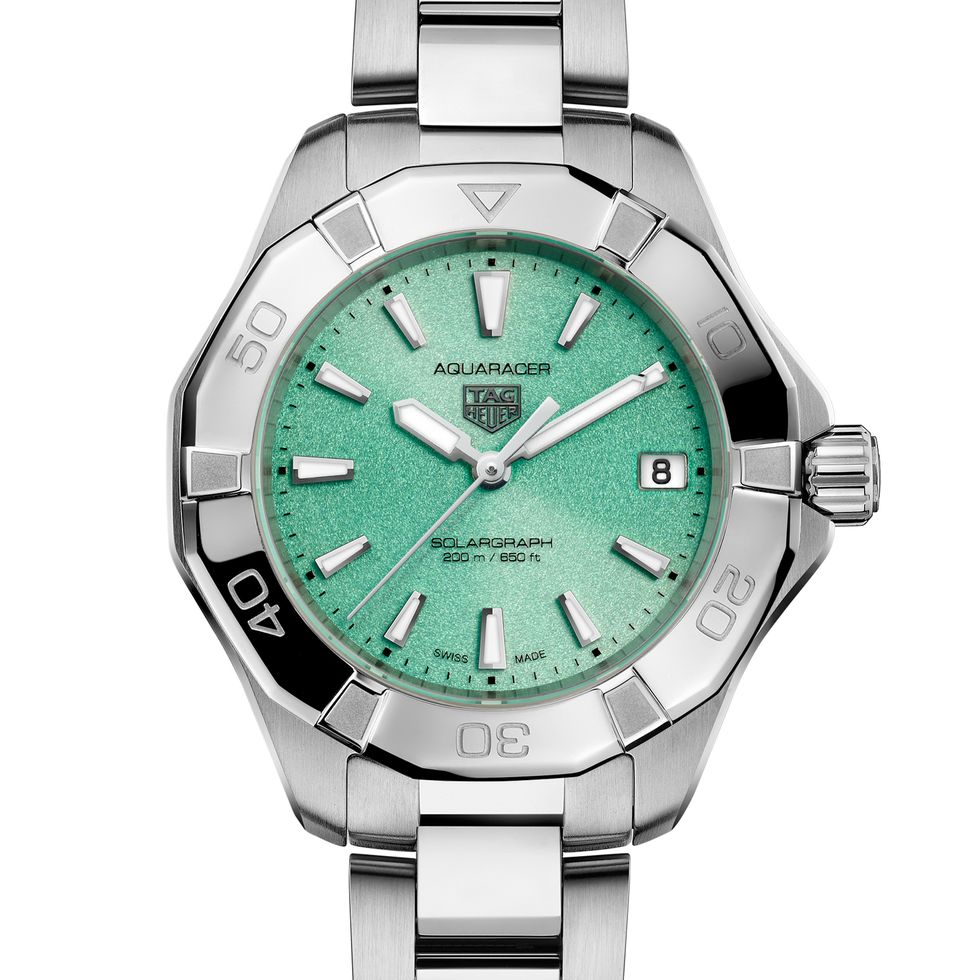 The Aquaracer Professional 200 Solargraph ($2,150) is a quartz-driven watch powered not by a battery but by solar radiation gathered through the dial by a light-sensitive cell. First appearing in 2022, and then issued in a titanium version, the Solargraph released last week is in a diminutive 34mm. You might think 34mm makes this strictly a woman’s watch. But in the last few years, trends to more discreetly sized watches have eclipsed the behemoths of the aughts. Nowadays, smaller looks better than ever.
